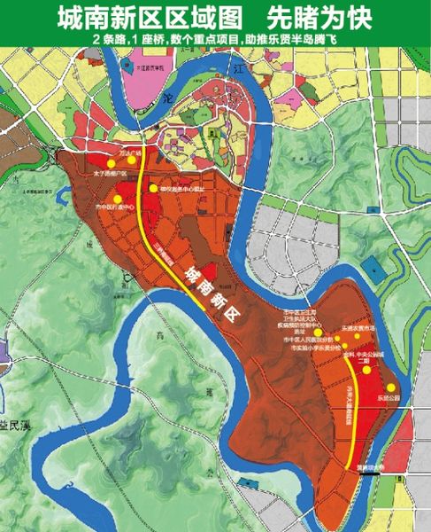 城南新區(qū)應(yīng)運(yùn)而生。2013年1月4日,市中區(qū)正式拉開城南新區(qū)建設(shè)帷幕。樂賢半島成為市中區(qū)“新城建設(shè)”主戰(zhàn)場,將被打造為宜居、宜游、宜業(yè)的生態(tài)新區(qū),以及成渝休閑度假、養(yǎng)生旅游的“后花園”。
