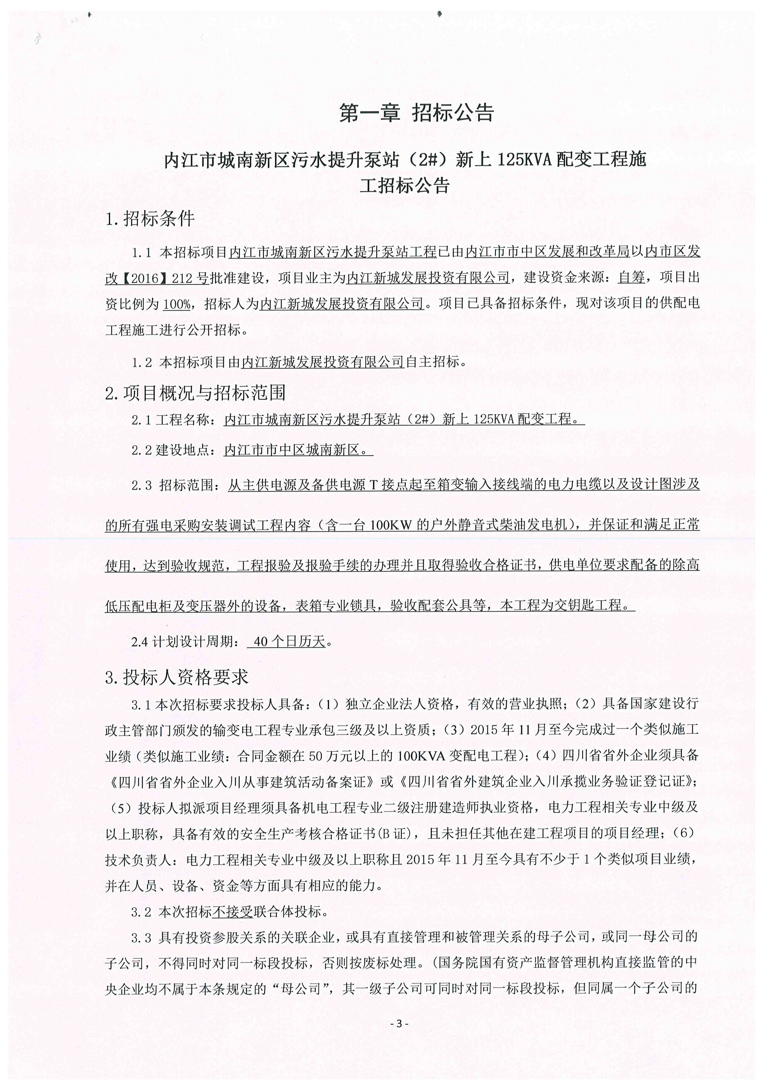 污水提升泵站(2#)新上125KVA配變工程施工招標公告
