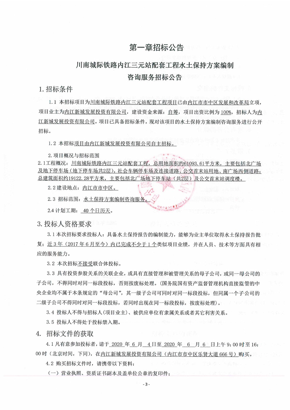 川南城際鐵路內(nèi)江三元站配套工程水土保持方案編制咨詢服務(wù)招標(biāo)公告